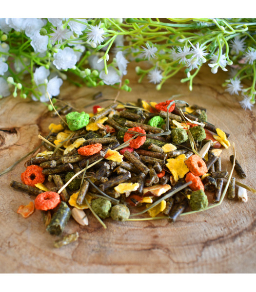 Mistura de rações, feno e sementes tradicionais, adequada para a alimentação diária de todos os coelhos. Sua fórmula exclusiva foi desenvolvida para manter a saúde e vitalidade dos coelhos.