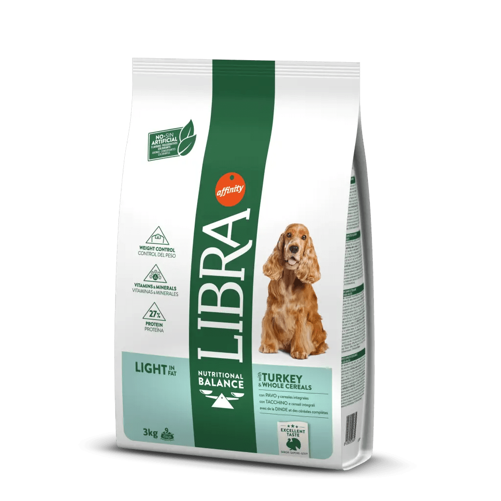 Controlo do peso – Com menos de 33% de gordura, comparativamente ao Libra Adulto, e elevado teor de fibra, para ajudar a controlar o peso do seu cão